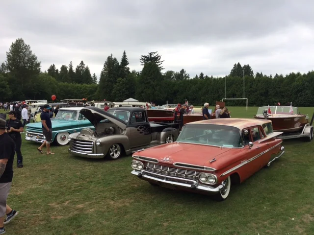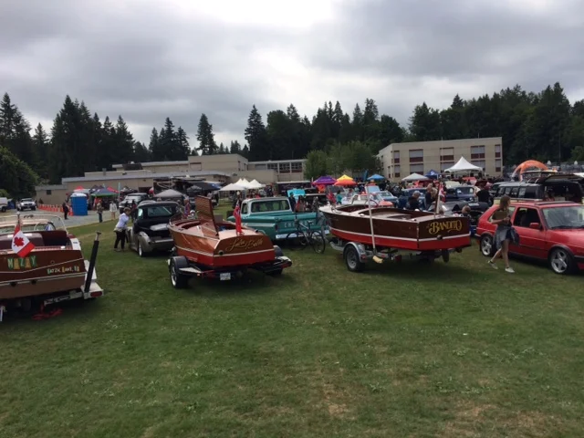 The Stay Gold Car show is an event that raises money for mental health. Held June 23rd in Langley, it always has a huge variety of vehicles to see. Supercars, 4x4s, hot rods, lowriders, antiques, VW’s, you will see everything! That’s why we crashed it with our boats! Car shows are good exposure for our hobby and club.