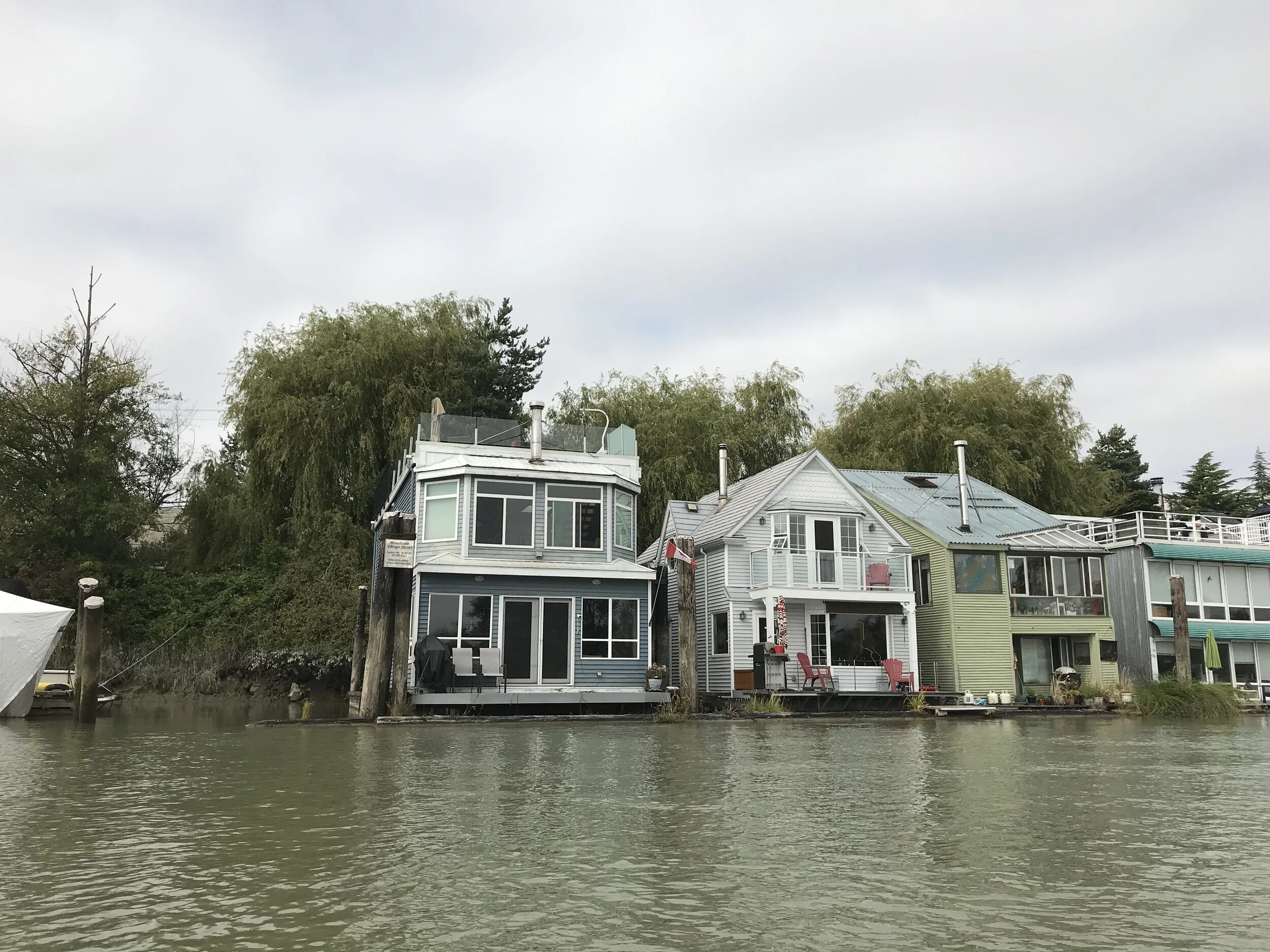 Although the river is lined with log booms and the spill overs of industry, I was surprised to see a lot of houseboats tucked away in little sloughs. A very cool way of life! In fact I like the way industry and residential developments are combined on this ever changing river.
